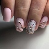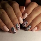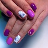 If you apply an aggressive design in this case and decorate all your fingers with it, then the manicure will not look natural and concise. Short length imposes certain limitations. Cover all the fingers with one tone, and for design, leave only one (maximum two) nails. Such an emphasis will give freshness and originality, but the manicure will not work out as a result of being overloaded and lurid.