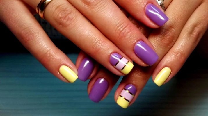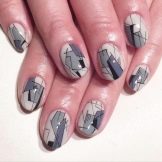There are both special stencils on the adhesive basis, presented in the form of drawings, and ordinary adhesive tape. In the first case, you will just need to attach it to the nail and paint over the desired area. The second option allows you to show imagination and create your own unique geometric pattern.