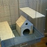 Often, the bottom of the cage becomes the optimal place for the house, so as not to worry about the pet again. But if you decide to install an overnight stay for a small animal on a shelf in a design impulse, you should securely attach the walls of the structure to the rods and shelf.