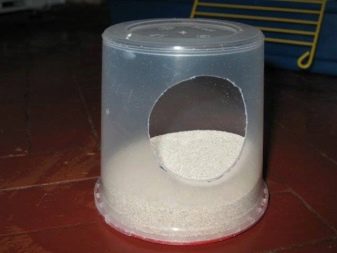 An ordinary plastic bucket is good in that it can be used periodically or left in the cage on an ongoing basis. It is worth giving preference to small, but capacious buckets.