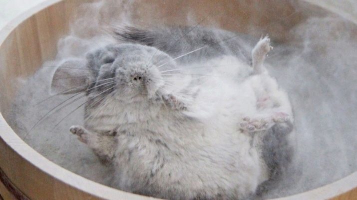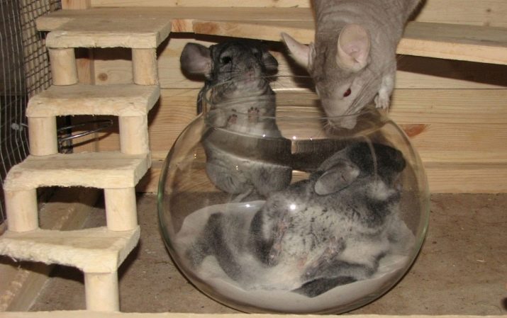 These animals take baths very intensively, and an ordinary pan will not work, as dust will fly everywhere. Therefore, you will need to purchase a special bathing suit, which will not allow the sand to fly in all directions. And also you can do it yourself at home.