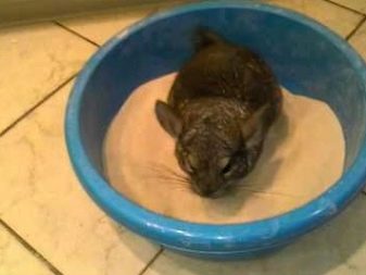 Let the animal in the bath, he himself knows what needs to be done. And you can watch the happy creature, which takes incredible pleasure from the sand baths. It is better not to leave the bath for more than 30 minutes, because chinchillas love to fall asleep in the sand, and this dries the skin. It is not necessary to turn to the help of the bath more often than once every five days.