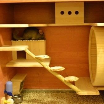 - Ladder. Small designs are great for the continuous development of the animal's paws or sharpening teeth. An ideal option with your own hands is a wooden stick placed vertically and leading from the shelf to the bottom of the cage.