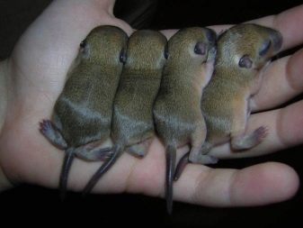 The puppy has a rounded muzzle, small round ears. The neck is short.If the individual has white teeth, then it is breastfed and its age is no more than two months. Over time, rodent's teeth become darker and turn orange.