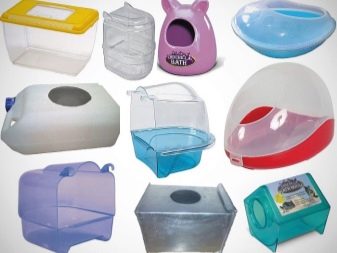Some owners buy a bath in a pet store or use special containers, the size of which is 30 * 20 * 20 cm. They are made of plastic or tin.