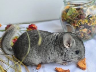 The issue of chinchilla nutrition is no different from the diet of a rabbit. At the moment, a large number of feeds for such a variety of rodents are sold in specialized pet stores. At the same time, you can feed your pet with dry bread crusts, seeds, fruits. In the winter season, the pet will enjoy the mixed grass hay, twigs, dried apples, raisins, nuts, dried apricots, rose hips and barberries.