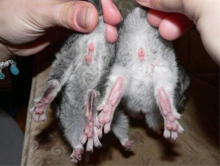 It is simple to distinguish a female from a male: in a girl, the anal and genital openings are located nearby, in a boy - at a remote distance (3-4 mm).