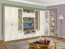 Like any other furniture, depending on the style of room decoration, modular cabinets are made of various materials. For residential premises, such as a living room, decorated in a classic style, chipboards and wood-fiber boards are most often used. The second option is considered more environmental, but also more expensive.