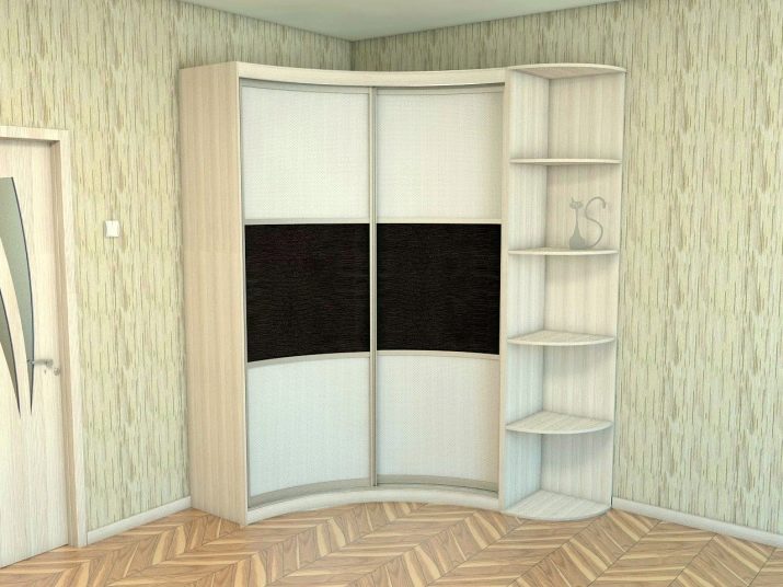 - Radius. Most often, such cabinets are also installed in the corner of the room, but unlike the corner version, the door is not straight, but curved to the inside or outside.