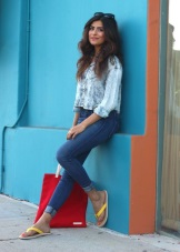 - If the shales are bright, then your ankle will become an object of attention. Do not close it, on the contrary, you can wear elongated air sundresses (but not on the floor).