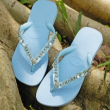 Rubber slates have a jumper that starts from the middle of the foot and ends between the toes. The sole in such shoes is soft, but durable, does not have a spot. Slates are presented in a wide assortment of models that can have a small wedge or ribbed surface. Differences may also be in the form of a jumper.
