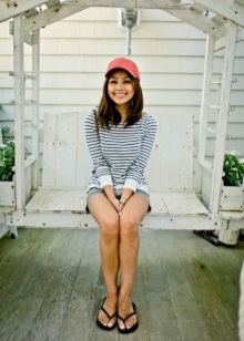 - Swimsuit + pareo + slates - ideal for walking along the beach. In this case, the shade of the slates and swimsuit should be perfectly matched, but contrasting options are possible. One leg can be decorated with a summer bracelet.