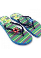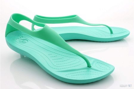 Modern flip flops, also called shales or flip flops (due to the sound made when walking), are lightweight summer shoes without a backdropA kind of fully open sandals. They stay on their feet thanks to two special straps connected to each other by a vertical bridge in the area of the thumb and “index” fingers. Flip flops are quite versatile, they are worn with pleasure by both adults and children. And today it is customary to wear them on bare feet without socks. Most often, these shoes are used on the beach, in the pool, sauna or bath.