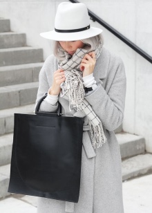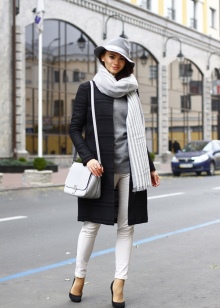 A white hat should be worn in tone with a scarf or gloves. An excellent tandem is a white handbag or boots.