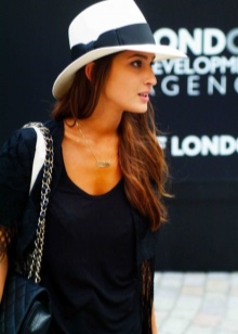 A white hat with small margins is often used to create elegant images. This accessory is more related to men's style or unisex. Designers offer a variety of styles - bowler hat, trilby, fedora, cowboy model, etc. These models are often decorated with a ribbon of contrasting color, which is usually located along the fold of fields.