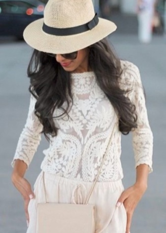 A snow-white hat in combination with white clothes looks beautiful and gentle. If you want to create a bright image, then you should use at least one element of white clothing.