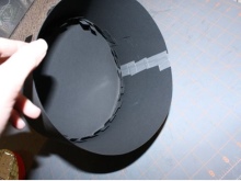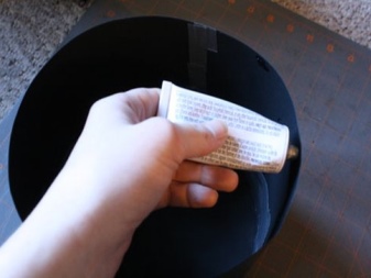 - Cut a rectangle from cardboard that is equal in length to the diameter of the head, and a couple of centimeters is added to the folds and seams. You can select any width. Using transparent tape, you need to connect the edges of the rectangle and make the hollow cylindrical figure happy.