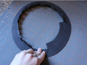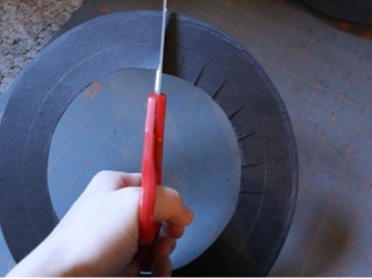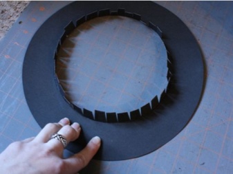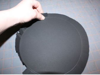 - Then you need to think about creating hat fields. To do this, draw a circle on the cardboard equal to the upper circumference of the garment. After around it, you need to draw another circle, already larger in diameter, and cut both circles so that a ringlet is obtained.