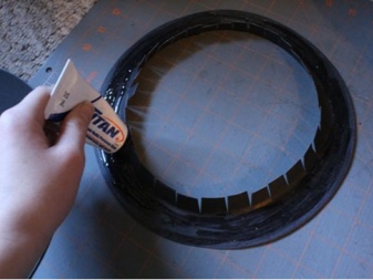 - On the ring, you also need to create a kind of fringe and glue it with glue and adhesive tape to the other side of the cylinder in the same way as the bottom was glued.