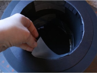 This is only one of the options for creating a do-it-yourself headgear. In addition, the cylinder hat is also made of felt, genuine leather or suede according to a similar principle - simply all cardboard parts are sewn or glued to the fabric material, and then glued to each other in the above manner.