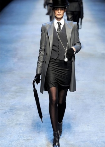 - Coat - cashmere or textile coat of classic cut will create in combination an old, vintage image of good old England of the XIX century. It is better if the coat will have a dark shade. In this outfit it will be appropriate to visit an exhibition, museum, cinema, theater or go for a walk on a gloomy or rainy day.