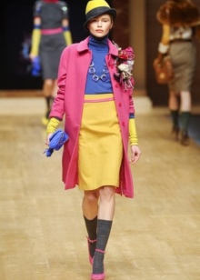 Ideal is a combination of a cloche product with a coat of straight, fitted and loose cut. Extravagant fashionistas can pick up the insanely popular kimono coat. A straight fur coat or cloak with a belt at the waist will look no less attractive with a hat. An accessory made of yarn is less demanding in the selection of outerwear and will perfectly combine not only with classic outfits, but also with a variety of jackets.