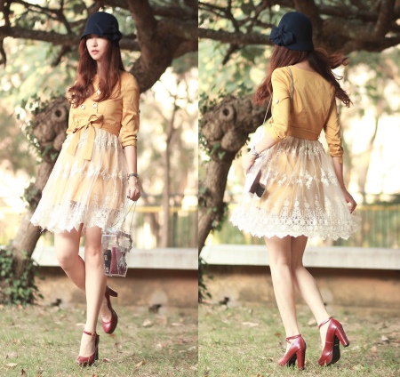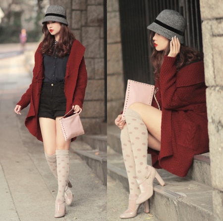 Feminine accessory in vintage style is recommended to be combined with elegant shoes, such as: heeled or stiletto shoes, fashionable retro shoes, neat suede and leather high heel boots, suede over the knee boots and high boots with flat soles. In the demi-season, the image can be supplemented with flirty ankle boots or low-heeled shoes with high heels or wedges.