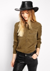 - You can create a sexy and feminine image with a checkered shirt tied so as to open the tucked-in tummy of its owner, jeans shorts or jeans and a leather hat. A similar kit will look harmoniously only on slender fashionistas.