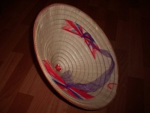 The process of creating this hat is interesting. For this, underdeveloped bamboo leaves were taken and immersed in water to prevent delamination. Then they were cleaned and dried to white. To preserve color, the leaves were treated with sulfur, and then divided into the thinnest stripes, from which they then sewed a hat.