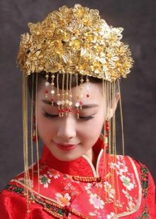 One of the most beautiful hats is the hat worn by a young Chinese woman on her wedding day. The hat is made of pure silver and decorated with the image of a long-tailed bird. Such a piece of clothing weighs about 10 kilograms, and in order to acquire it for its daughter, many Chinese people begin to save money from almost her birth.