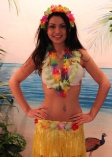 Hawaii is the sun, hot summers, exotic vegetation and colorful light clothing.It is very easy to imagine a Hawaiian costume even for those who are not strong in knowledge about the traditions of different peoples of the world: these are light shirts, shorts, skirts and bustiers, painted with flowers, exotic vegetation, birds of paradise, etc. A mandatory element of the costume is a bright, fragrant wreath of flowers worn around the neck. As for the decoration of the head, then most often it is either a large fragrant exotic flower that adorns a woman's hairstyle, or a wreath of flowers.