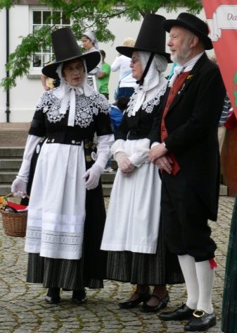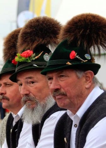 The traditional men's hat of the Germans had a small neat shape and bent fields on the sides and back. As a decoration, a lace around the tulle and a small bundle of bird feathers were necessarily used.