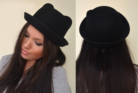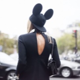 The hat with the ears of a cat or Mickey Mouse with casual outfits looks insanely original and stylish. They are able to decorate with themselves, it would seem, simple ensembles, consisting of tight-fitting skinny jeans, stylish sneakers, a sweatshirt and a short trigger. For such outfits, it is recommended to choose beautiful felt hats.