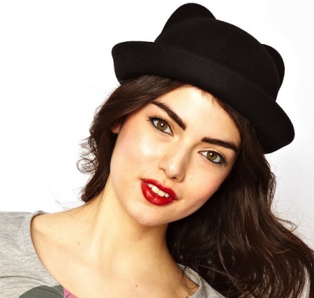 Especially popular at the moment are models with cat ears. Such options look original and attractive. The ears may be sharp or slightly rounded. The most common are felt models, because they keep their shape perfectly and do not deform over time.