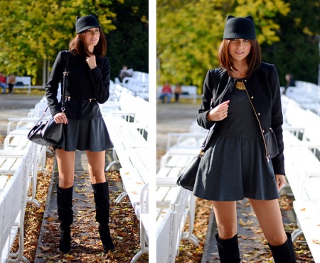 For the demi-season, copies of fleece or felt are ideal.They will be perfectly combined with sheepskin coats to the middle of the thigh, windbreakers, light parks, leather jackets and jackets and feminine coats of various cuts. Hats will look great with youth denim jackets.