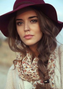 For example, under a hat with a high top, it is recommended to wear the same high hairstyle, and the lower curls may well peek out from under the headgear. You can also collect hair in a neat bun at the back so that the fields of the hat seem to lie on it.