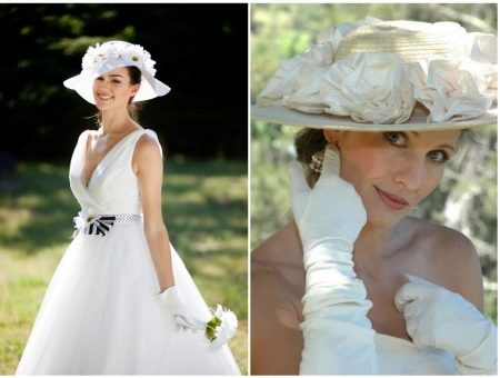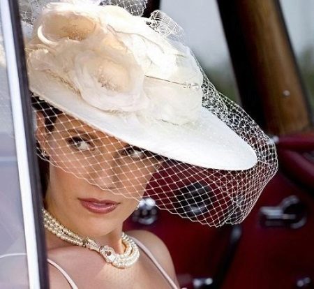 The hat in the bride’s wedding suit is, first of all, a rather stylish accessory that can emphasize the purity and purity of the girl and make her even more beautiful.