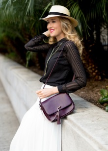Women with such a hat should create a retro look. A classic shirt and a strict skirt will perfectly complement the homburg. A summer shirt over a T-shirt with jeans and sneakers will be combined with a hat.For lovers of a romantic style, a loose skirt and high-heeled shoes are suitable.