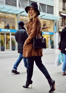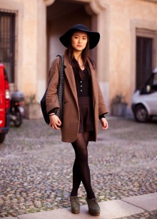 With such a hat it is worth considering in retro style. You can combine it with a skirt or pantsuit, fitted coat, raincoats. A slouch with a sheath dress or a narrowed skirt with an airy blouse will look great. Add the image should be classic boats, ankle boots or ankle boots.