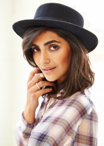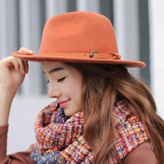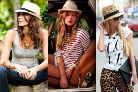 Hats of this type should be chosen by slim girls, as a hat can emphasize your fullness. Hats made of textiles are best combined with light blouses, short dresses. A wide-brimmed hat made of felt will look perfect with a leather jacket. You can dilute the image with heels, a loose dress or shorts.