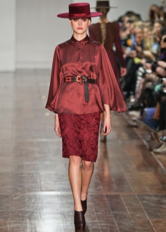 Hats style pork-pie will look perfect with tops, t-shirts, light blouses. They can be worn in combination with dresses made from natural fabrics of loose fit. Fashion houses show this style with classic shirts or pantsuits.