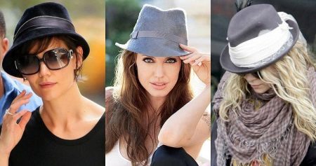 It is recommended to combine Fedor's hat with plain trouser suits and high-heeled shoes. Short denim shorts along with a classic cut shirt are perfect for a hat. Together with Fedora, tight-fitting dresses of neutral tones will elegantly look.