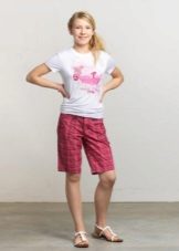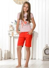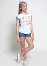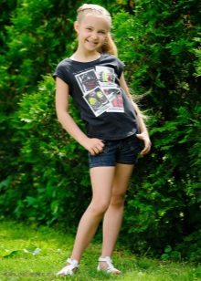Teenage girls already want to look stylish. It is important to correctly choose the length of the shorts. Slender girls can recommend mini shorts, of course, you do not need to wear them at school or at an official event. But for visiting the beach or the gym, gatherings with girlfriends - this is a wonderful option.