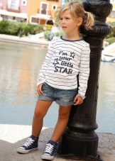 Short mini-shorts to the middle of the thigh are the best option for children's games in the fresh air. Such things, sewn, as a rule, from cotton, are well worn, do not have problems with washing and at the same time look elegant. Denim models are always relevant, usually with pockets. Shorts with a thin belt and decorative inserts look especially impressive.