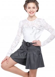 Universal clothing - shorts-skirt, combining femininity and practicality. This thing (depending on the fabric) is suitable for any season: summer options are made of chiffon or fine knitwear; in the cold season, models made of wool and velveteen are appropriate. Skirts-shorts are presented in many styles: pleated, pleated, asymmetrical cut with a smell. Such a thing, but not too short, can also be worn to school. A short skirt can be casual or festive (again, depending on the fabric and decor).