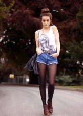 As for accessories, the most commonly used strap is thin or wide, especially if the top is tucked under shorts. Caution should be with tights, so as not to reduce the cost of the image, so you should give preference to a plain classic or delicate elegant, but not vulgar patterns.
