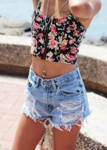 But with low shorts it is better not to wear short tops, unless it is a suit for sports, because otherwise the image will look vulgar.