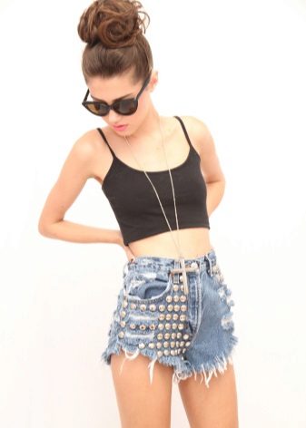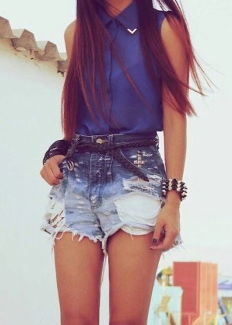 Denim shorts can be distinguished as a separate category, because they are suitable for any time of the year, and they are universal in creating images. It can be classic dense denim shorts, torn, with scuffs or shortened so much that the edges of the pockets are visible.