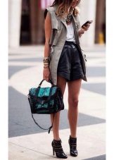 Shorts made of genuine leather look appropriate in an ensemble with a jacket, short jacket or fur vest. With a black bottom, you can wear the top of any other color scheme.