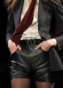 Classic leather shorts are always in fashion. They can be combined with different elements of the wardrobe, creating luxurious impudent bows.